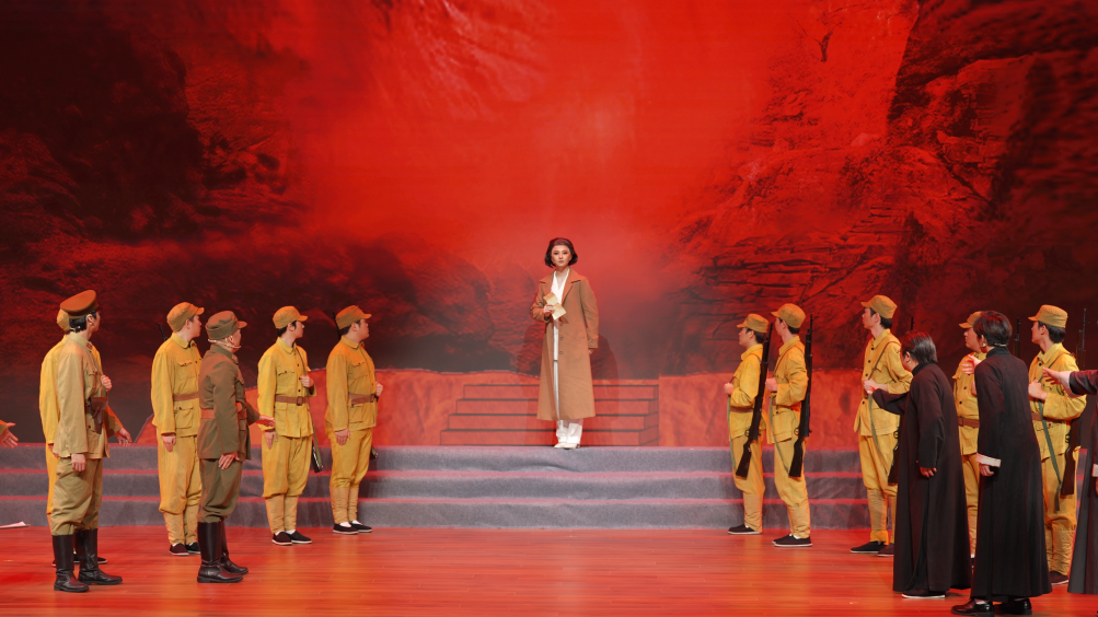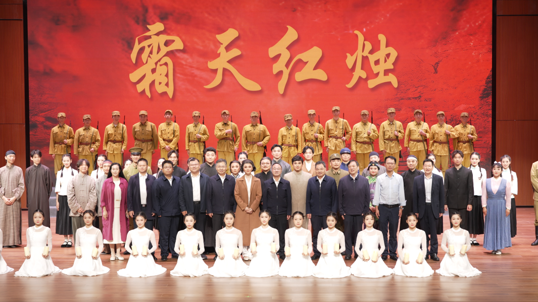 “一山复一山,一岭高一岭。学堂遍黄冈,处处读书声……”在深沉厚重的主题旋律中,演出大幕徐徐开启。《霜天红烛》以黄冈师范学院百年办学历史为创作背景,通过艺术化的舞台呈现,生动展现了中国师范教育在时代变迁中坚守初心、薪火相传的感人历程,深刻诠释了“红烛精神”历久弥新的时代价值。