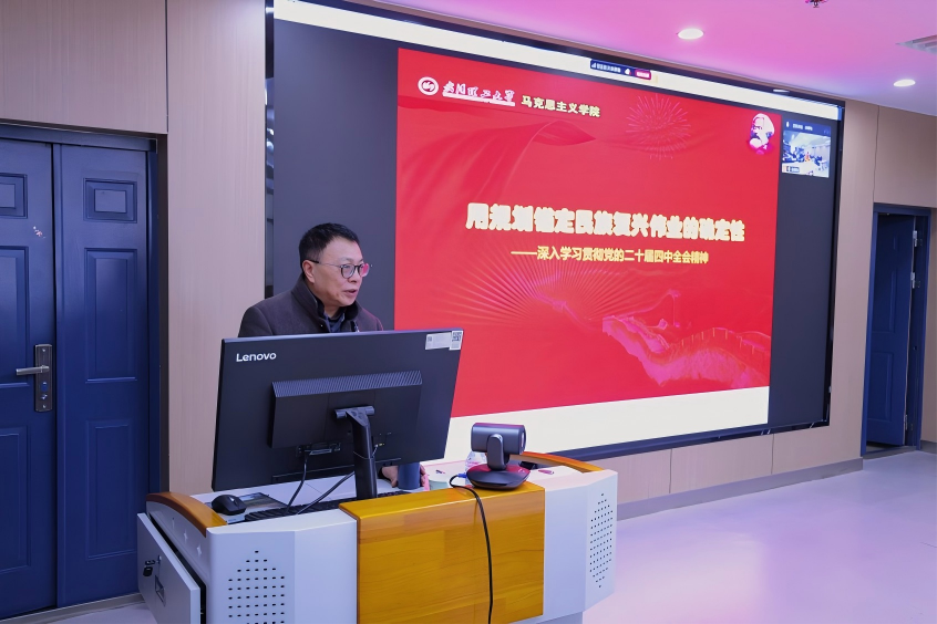 主旨报告环节,省委讲师团成员、武汉理工大学马克思主义教授朱喆以“用规划锚定民族复兴伟业的新局面”为题,以党的二十届四中全会精神为核心,强化四个意识,结合大中小学思政课教学实际,作了内涵深刻、指导性强的主旨报告。报告系统解读了全会精神的核心要义与实践要求,联系“十五五”规划为中国式现代化发展承前启后,为参会教师精准把握教学方向、有效融入课堂教学提供了坚实的理论支撑和清晰的实践指引。