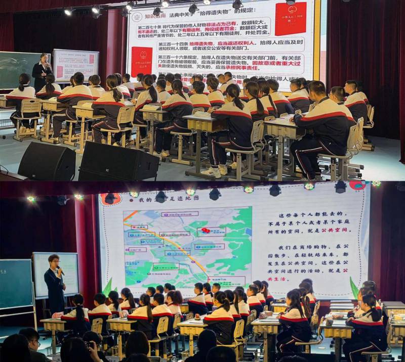 活动聚焦“崇尚法治、恪守规则”主题,以法治教育为切入点,通过小学、初中两个学段的课堂教学展示,呈现了大中小学思政课一体化建设在法治教学主题上的探索与实践,旨在通过跨学段教学展示与联合教研评课方式,探索大中小学思政课循序渐进、螺旋上升的有效路径,推进不同学段间的有机衔接与深度贯通。