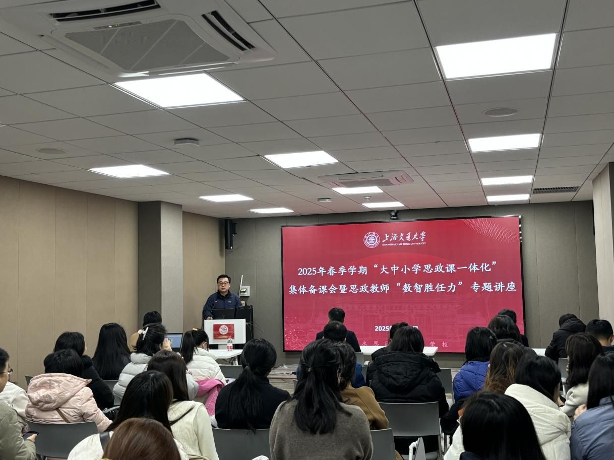 为深化思政课改革创新,推动大中小学思政课一体化建设,2月25日,马克思主义学院举办2025年春季学期“大中小学思政课一体化”集体备课会暨思政教师“数智胜任力”专题讲座,邀请上海交通大学教务处课程建设负责人余建波分享以DeepSeek为代表的生成式人工智能平台在教学场景中的创新应用。上海市闵行区中小学、闵行职业技术学院思政教师、“形势与政策”课教师等近百人参会,马克思主义学院党委副书记张巍、副院长魏华参加会议,会议由魏华主持。