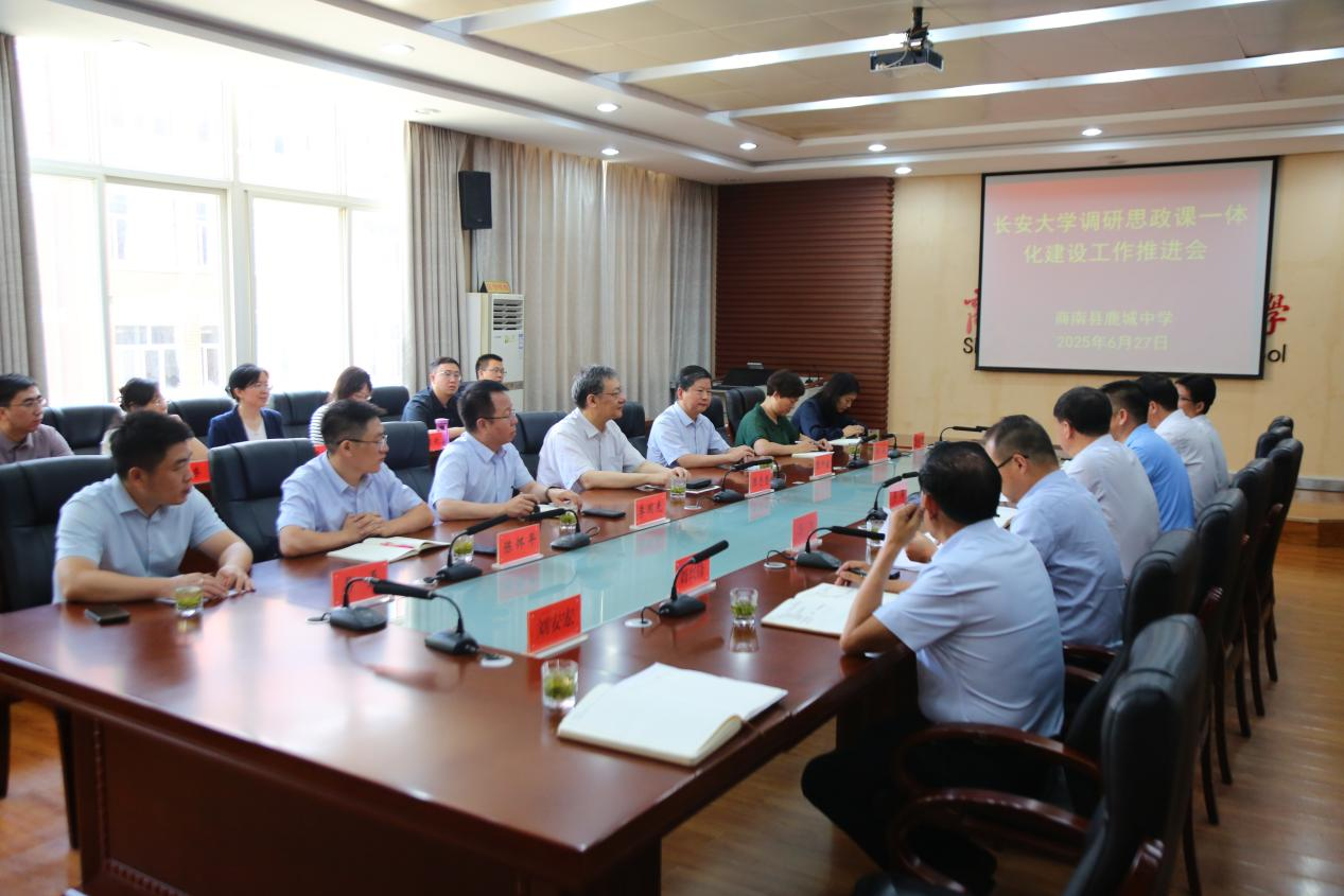 为深入贯彻落实习近平总书记关于“大思政课”建设的重要指示精神,推动大中小学思政课一体化建设,2025年6月27日,长安大学与商南县在鹿城中学联合举办大中小学思政课一体化建设交流研讨活动。学校党委书记陈志坚,副校长黎开谊,党办主任、统战部部长李国光,宣传部部长郗波,校团委书记丁芝娟,校办副主任易磊出席本次活动。马克思主义学院院长陈怀平带领省级思政课名师工作室骨干教师代表李婷、沈秀芳、王振宇、余猛、田雪航参加。
