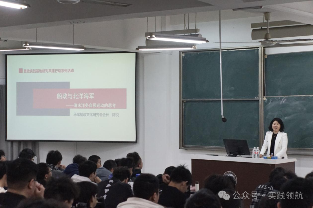 为落实思政实践基地结对共建行动。2024年3月21日下午,我院思政课实践中心特邀马尾船政文化研究会会长陈悦教授走进纲要课课堂,在铜盘校区B112教室为部分大一学生做了《船政与北洋海军——清末洋务自强运动的思考》的专题授课,活动由朱广琴老师主持。