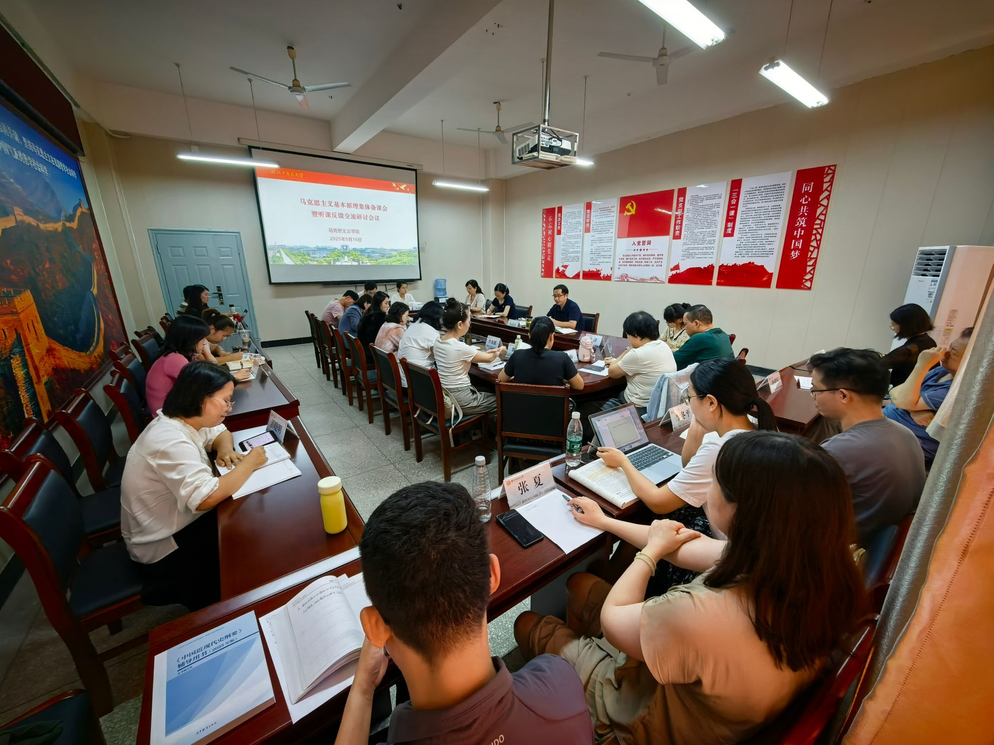 为进一步提升教学质量,促进青年教师专业发展,湖北中医药大学马克思主义学院于9月16日上午成功举办了集体备课暨听课反馈交流研讨会。全院教师齐聚一堂,围绕青年教师课堂教学情况进行深入交流研讨。