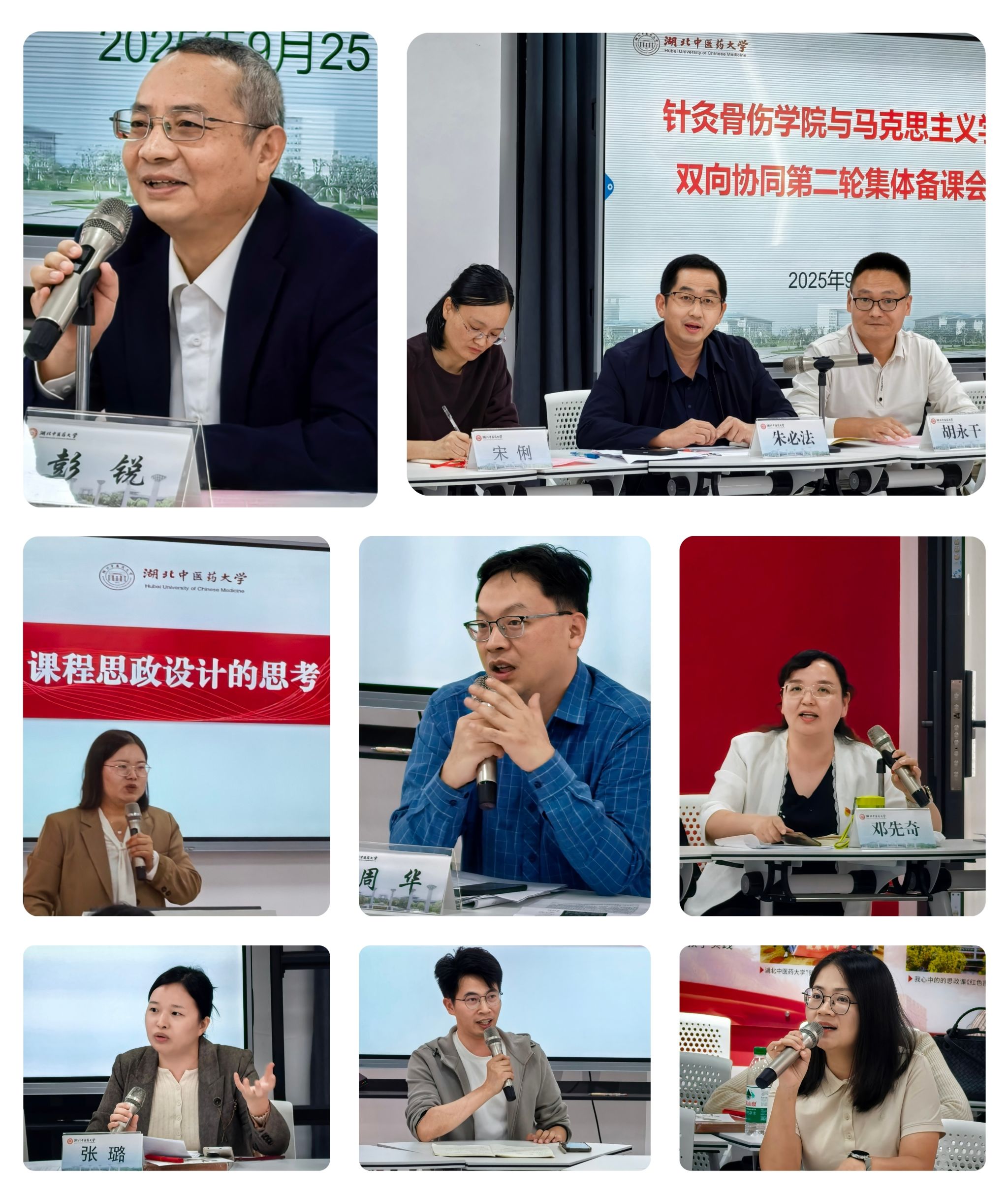 随后,马克思主义学院王小静、邓先奇、张璐以及针灸骨伤学院周华、张晓林、唐金桃等六位老师,围绕“课程思政设计的思考与实施路径”等主题进行了交流发言。