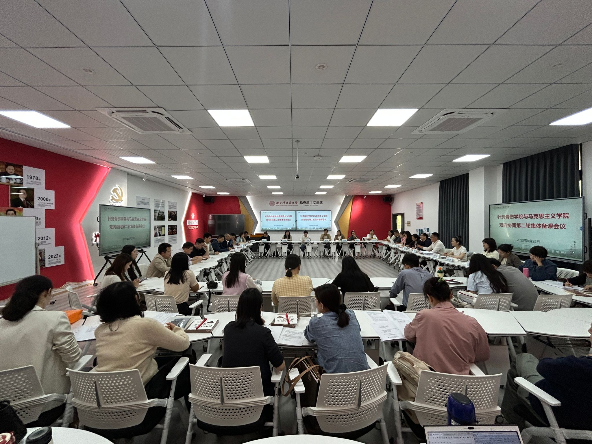 9月25日,针灸骨伤学院与马克思主义学院在杏林阁J208举办思政课程与课程思政双向协同第二轮集体备课会。会议由马克思主义学院副院长胡永干主持,针灸骨伤学院与马克思主义学院全体教职工参加会议。
