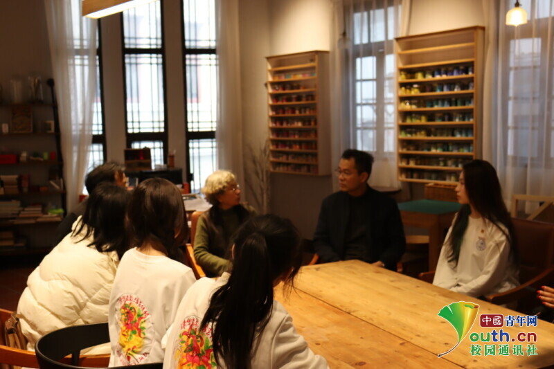 图为实践队成员正在采访珠绣非遗传承人谢丽瑜女士。李佳晨 供图