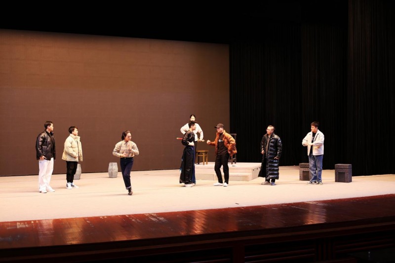 随后,贺嘉老师带领实践队成员们来到剧场舞台,观赏闽剧演员的练习。尽管舞台上的演员们身着朴素的练功服,但那一招一式、一颦一笑仍遮掩不住闽剧的魅力和历史传承下来的三条簪精神。闽剧演员通过细腻的表演,展现了三条簪所代表的“为国、为家、为己”的精神内涵,让实践队员在欣赏戏剧的同时,也深刻感受到了三条簪的文化魅力。贺嘉老师提到,现在的闽剧院陆陆续续加入了许多年轻演员,他们在这一行中不断的深造,有许多年轻演员都取得了不错的成绩,将闽剧从上一代人的手上传承了下去。对此,实践队员深感体悟,国家之任在于青年,三条簪与闽剧的相互联系、相互成就的同时,也需要当代青年去传承和发扬。实践队员们纷纷表示,将以此次实践活动为契机,积极投身到传统文化的传承与保护中去,为传承和发扬中华优秀传统文化贡献自己的力量。