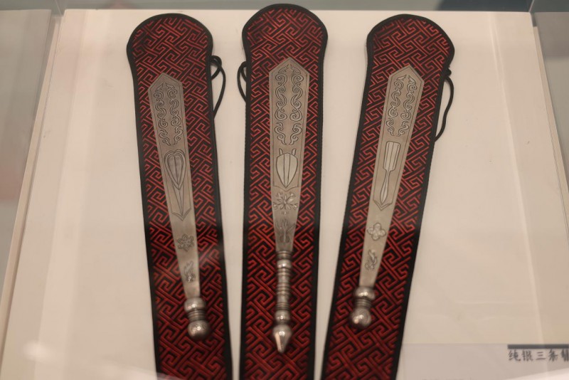 图为馆内纯银三条簪头饰