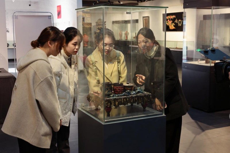 图为实践队成员参观馆内脱胎漆艺作品