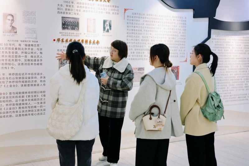 图为贺嘉老师为实践队成员介绍闽剧