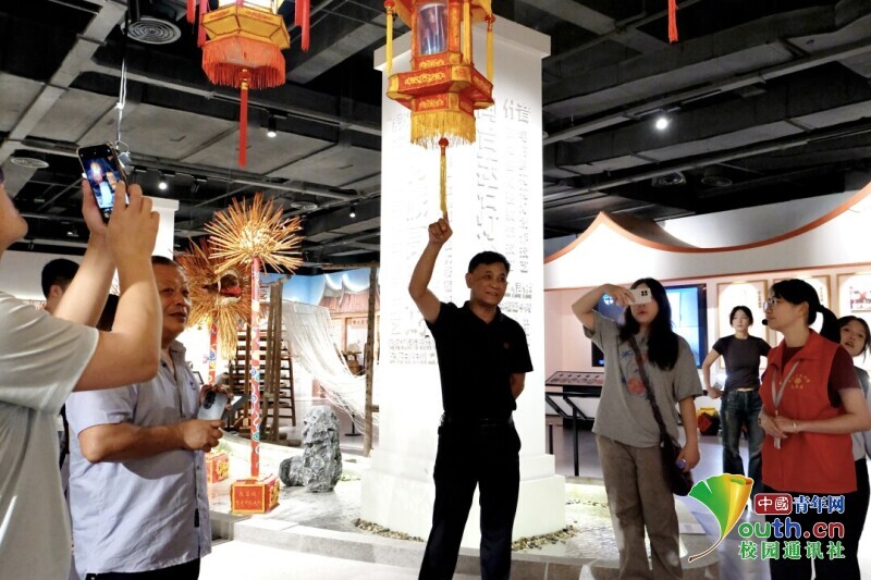 图为博物馆负责人向实践队员讲解非遗项目。 温芷菲供图