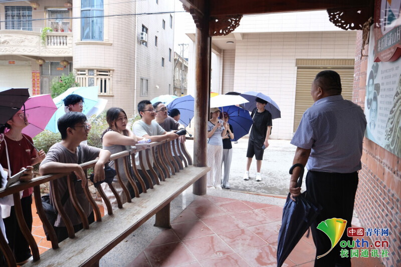 图为村干部向实践队员介绍村史。 温芷菲供图