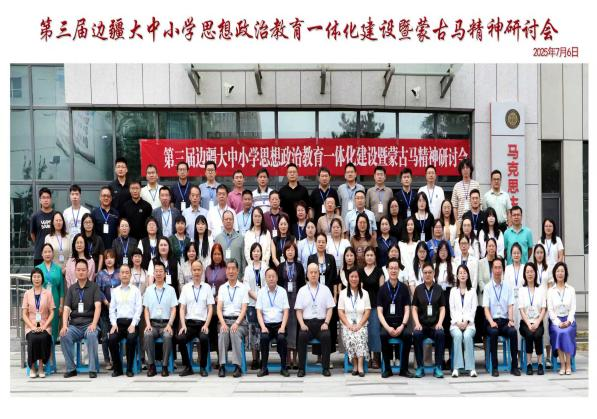 2025年7月6日,第三届边疆大中小学思想政治教育一体化建设暨蒙古马精神研讨会于内蒙古包头召开。本次研讨会由内蒙古师范大学、天津师范大学、等联合主办,内蒙古师范大学、内蒙古科技大学等多所院校的马克思主义学院协办。会议吸引了来自天津师范大学、安徽大学、塔里木大学、北京科技信息大学、井冈山大学、西北政法大学、聊城大学、安徽农业大学等30余所高校和科研院所的专家学者,我院马莉教授、23级学硕胡亚琴也荣幸受邀参会。