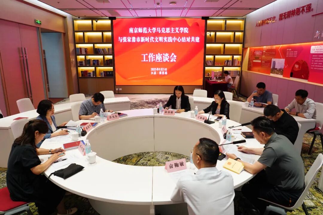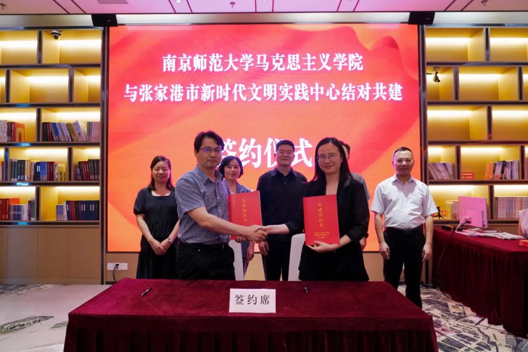 南京师范大学马克思主义学院院长洪光东、张家港市新时代文明实践工作指导中心主任王海燕共同签订《南京师范大学马克思主义学院和张家港市新时代文明实践中心共建协议》。南京师范大学马克思主义学院党委书记蒋其琴,张家港市委常委、宣传部部长陈卫兵共同为“南京师范大学大思政课教学实践基地”揭牌。