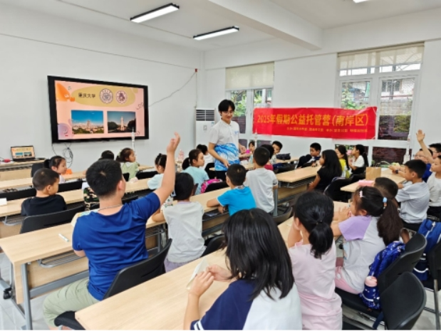 为积极响应由共青团重庆市委牵头的“未成年人假期公益托管”民生实事,探索数字化心理关爱新路径,助力“数智重庆”建设,2025年7月上旬,重庆大学公共管理学院21名师生组建“数智渝行,云端护‘心’”暑期社会实践团,深入重庆市主城10个社区托管中心,以“数字技术+心理关爱”的创新模式服务近300名托管儿童。通过AI互动、情绪课程、数字绘画等特色活动,构建了高校资源下沉社区的数字化心理服务新范式。
