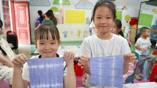 赓续中华优秀传统文化,弘扬非遗手工技艺,实践队员们精心策划并开展了“妙笔书朝气·丹青颂风华”主题创意涂鸦活动。本次活动特别设置了漆扇绘制、扎染体验与创意涂鸦三大环节。在队员们的引导下,孩子们沉浸于传统工艺与现代艺术交融中,绘制漆扇、体验布帛扎染,还在涂鸦中挥洒奇思妙想。这不仅增进了师生默契沟通与协作精神,更在实践中提升了孩子们的艺术感知、文化认同和创新思维。