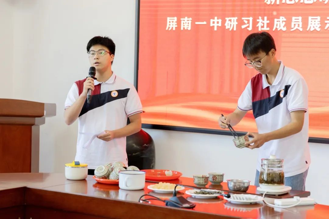 现场,闽江学院马克思主义学院和屏南一中签订共建协议,“理润心田”——大中小学思政教育一体化实践教育基地揭牌;新思想研习社成员作题为《“担”时代重任,“当”有为青年》的宣讲,汇报福州研学成果,并展示屏南非遗技艺——蛋茶表演,让大家充分感受传统文化与思政教育的融合之美。