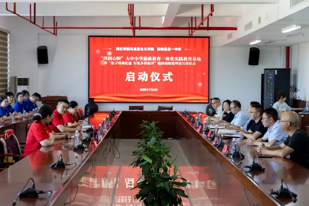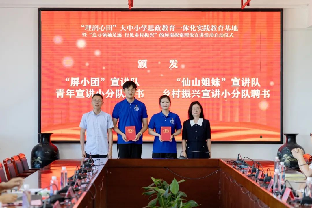 7月6日,“理润心田”——大中小学思政教育一体化实践教育基地暨“追寻领袖足迹 行见乡村振兴”的屏南探索理论宣讲启动仪式在屏南一中举行。闽江学院马克思主义学院院长陈东,县委常委、宣传部部长韦孝珠出席仪式。
