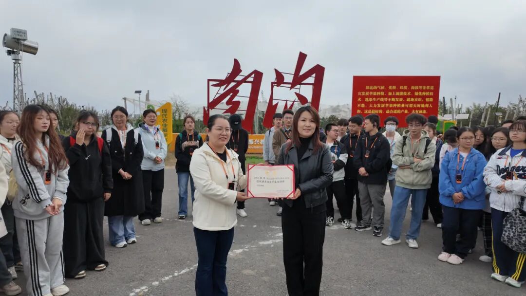 首先,亢鸽副院长代表学院致辞,说明了组织此次实践教学活动的目的和重要意义。同时,她代表学院向延安惠民农业科技发展有限公司总经理魏艳颁授“延安大学实践教学基地”牌匾及“实践教学指导老师”证书。魏艳总经理愉快接受并承诺将全力开放资源,与师生共同开发更多实践课程,让南沟村成为思政教育的鲜活教材。这一仪式的成功举行,为思政教育工作注入深厚的乡土底蕴与实践动能。