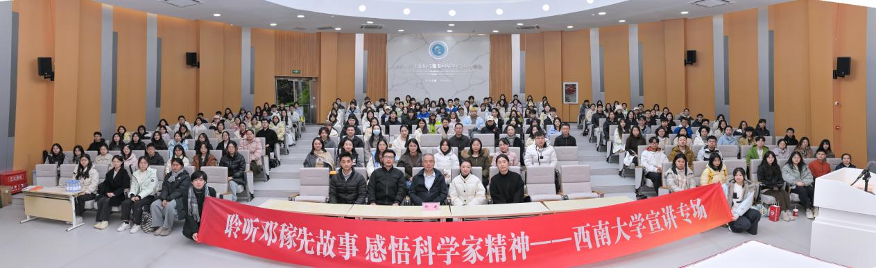 12月20日,由中国科协青少年科技中心和西南大学举办的“科学家精神宣讲——邓稼先的故事”专题宣讲会在西南大学25教1楼报告厅成功开展。本次宣讲邀请到全国政协委员、中国科学家精神宣讲团成员、中国和平统一促进会常务理事、九三学社中央社史研究中心副主任、四川“两弹一星”干部学院名誉院长、“两弹一星”功勋科学家邓稼先的妻侄许进以《邓稼先的故事》为题,深刻阐释了邓稼先的科学家精神,为师生们带来了一场生动的爱国主义教育“大思政课”。本次活动由校团委书记、党委学工部副部长(兼)于涛主持,各学院(部)团委书记及校院两级学生骨干共同参加。