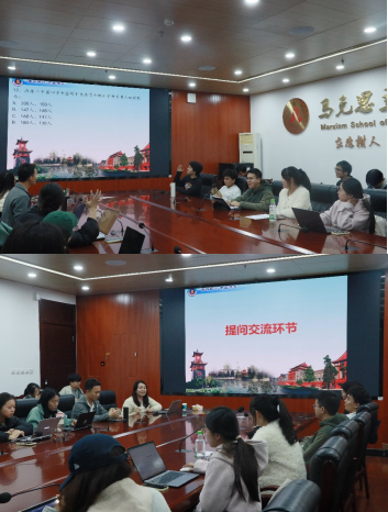 在提问交流环节,同学们围绕“新质生产力发展带来的影响”“文科专业在新质生产力发展过程中的作用”等问题展开热烈讨论。随后,唐娟老师进行总结,现场氛围热烈。在知识问答环节,同学们踊跃参与,积极抢答。