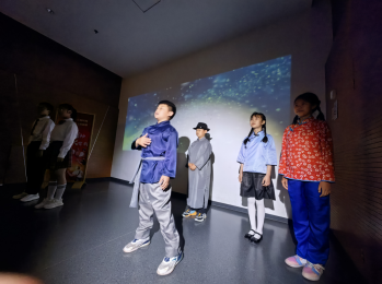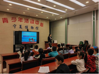 博物馆作为广大青少年的“第二课堂”,是学校和家庭教育的延伸,有责任激励引导广大青少年发扬“五四精神”,传承红色基因,奉献青春力量,展现青春风采。在“五四精神,传承有我”情景思政课活动中,广大群众观看了爱国主义电影,还一睹宁夏博物馆小小讲解员《穿越时空的对话》情景朗诵的风采。(近年来,宁夏博物馆品牌教育活动“少年说”寒暑假实践营为我馆培养出了很多优秀的小小讲解员,他们活跃在解说的舞台,穿梭在历史的长廊,成为了一道亮丽的风景线,也是我馆情景思政课展演的主力军。2024年,孩子们首次排演大思政课情景朗诵剧目《穿越时空的对话》,弘扬爱国主义精神的同时体现宁夏博物馆的教育职能。)