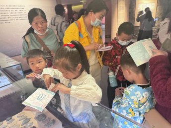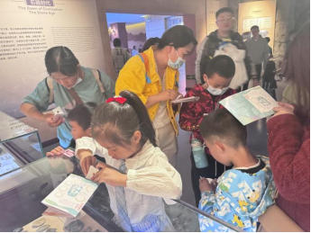文物传承劳动之美,在文物里也能领略到古代劳动者的智慧结晶和文明传承。《劳动最光荣——寻宝大联盟》活动分为两个部分,首先由社教老师为孩子们讲述五一劳动节的历史,观看有关五一劳动节的视频,让孩子们了解不同劳动行业对社会的贡献,进行互动并分享观后感。接着进入寻宝大联盟环节,孩子们领取寻宝手册和文物贴纸,手册分为六个部分:“文明曙光”“西戎春秋”“帝都番屏”“丝路重镇”“大夏寻踪”“塞北江南”。携寻宝手册,到展厅将所寻“国宝贴纸”贴在正确位置即可完成寻宝之旅并获得伴手礼一份。