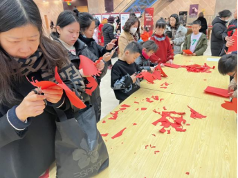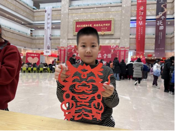 一张纸,一双手,寥寥数剪,就可以在方寸指尖剪成美好的作品。宁博特邀非遗老师现场教学,为观众剪纸龙。孩子们也加入其中,传承剪纸艺术,感受浓浓的年味儿。