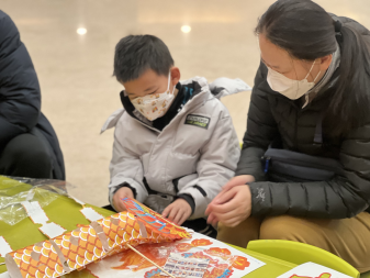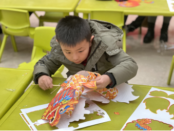 礼乐课堂结束之后,紧密衔接手工研习社“戴龙头,当龙头”龙头帽手工DIY活动。龙头帽有一种美好的寓意,即为“戴龙头,当龙头”。青面、金鳞,张着嘴,拧着须子,威风凛凛,又带着一些喜庆,深受老百姓的喜爱。龙头帽手工DIY活动,通过创意手工的方式加深青少年对龙文化的认知,感受浓浓的春节氛围。