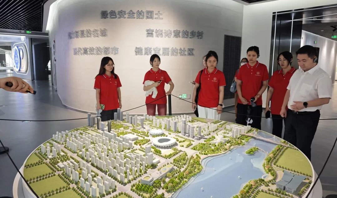最后,实践团队来到“追赶超越·未来之城”主题区域。绿色生态之城展区展现的渭河治理工程、海绵城市技术,印证绿色发展守护民生福祉的坚定决心;国际性综合交通枢纽展区中的空港、陆港、轨道三维联动模型,诠释“枢纽为民”的西安速度;国际文化名城展区展示了西安在文化传承、文化创新、文化交流等方面的规划和成果;魅力宜居城市展区不仅系统呈现了西安在生态、交通、文化、宜居等领域的发展成果,更深刻传递出“城市发展为人民”的核心理念,大家深刻体会到,这座“未来之城”的蓝图并非遥不可及的构想,而是正在一步步变为现实的生动实践,这不仅增强了对西安高质量发展的信心,更激发了大家关注城市发展、参与城市建设的责任感与使命感,让人对这座城市的美好未来充满期待。