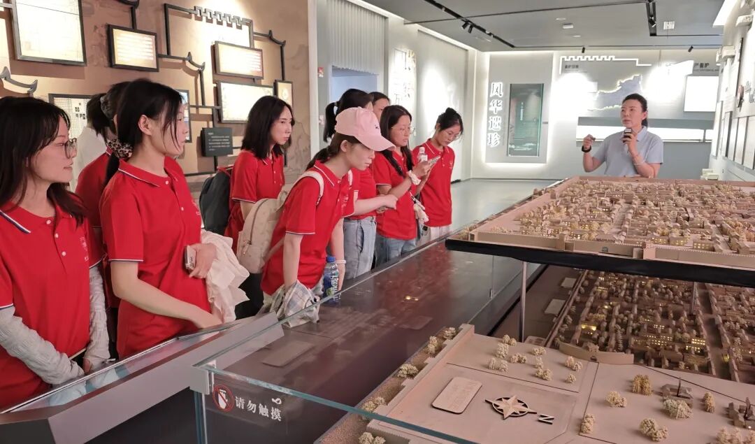 7月16日,实践团队师生踏入规划馆,在讲解员的引导下开始参观。师生们首先来到“千年溯源·东方智慧”主题区域,在智慧营城展区,师生们沿着西安城演变的时间线,从萌芽、初创、发展、鼎盛、延续五个阶段,深入了解了这座古城的发展历程;在风华遗珍展区,陈列的陶器、城砖与建筑构件,诉说着城市文脉守护的世代接力;“长安三万里”互动展项让师生们沉浸式体验了诗词与长安的深厚渊源,传统文化滋养现代城市的生动实践令人振奋。