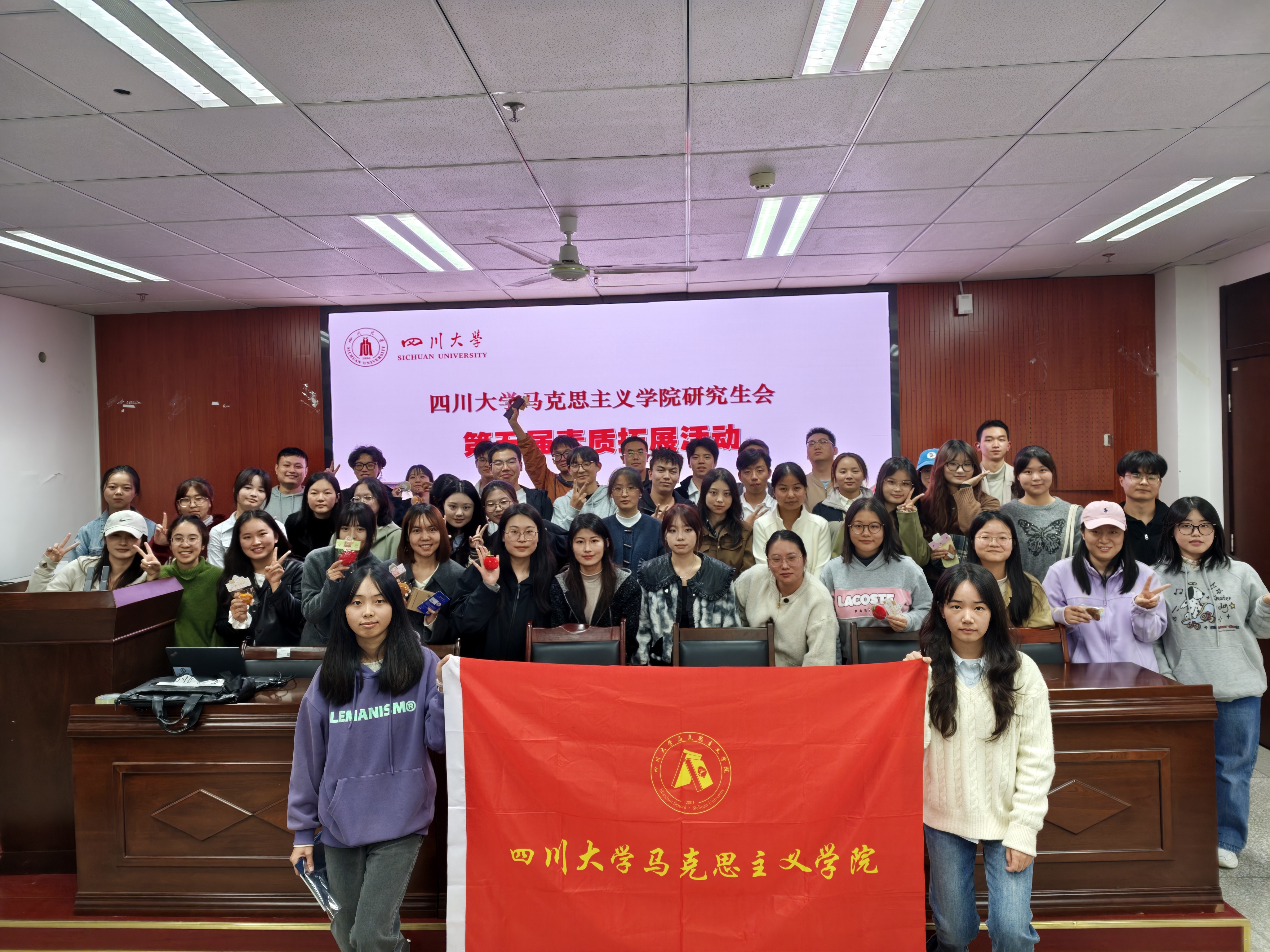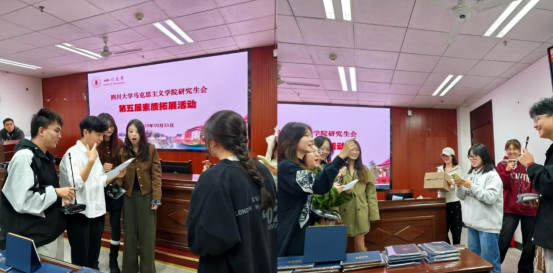 为增强我院研究生会成员间的了解与信任,促进交流互动,激发同学们参与文体活动的热情,2025年10月31日下午,我院研究生会于江安校区文科楼二区411教室组织开展了“新叶汇成荫,携手拓新境”综合素质拓展活动。本次活动由马克思主义学院2025级硕士研究生严飞主持,吸引了近50名研究生同学共同参与。