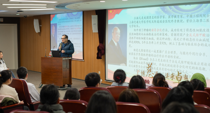 3月7日中午,2025年瑞金临床医学院第一期“思政大讲堂”开讲!本次思政大讲堂有幸邀请到了陈挥教授为大家讲述王振义院士的“科学家精神”。瑞金医院副院长、血液科赵维莅教授也出席了此次活动。
