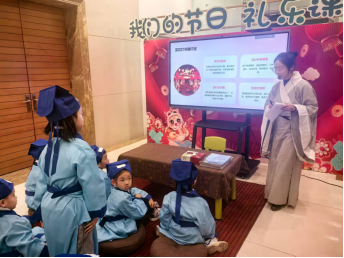 本次“龙蛇飞动”博物馆里过大年元宵节专场活动在孩子们礼乐课堂的朗朗读书声中拉开帷幕。《我们的节日-礼乐课堂》是宁夏博物馆于2023年打造的系列精教育课程,意在让广大青少年在不同的传统节日里感受中华优秀传统文化的博大精深。在礼乐课堂中,孩子们统一着装,研学老师化身老夫子,讲授元宵节的由来及习俗,带领孩子们阅读有关诗词、文学作品以及相关的神话传说,让孩子们深入了解了传统节日的内涵,引导孩子们认知传统、尊重传