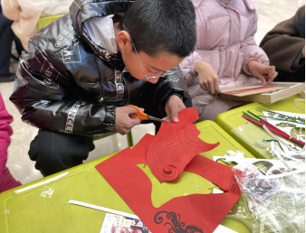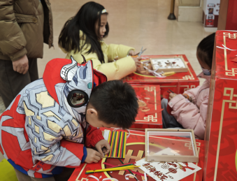 礼乐课堂结束后,DIY八角蛇形灯、巧手扎福包、DIY翻翻蛇、手绘十二生肖面具、蛇形拓印等手作体验活动争奇斗艳,吸引了众多市民参与,孩子们在家长的陪同下兴致勃勃地剪窗花、做手工,大家在欣赏艺术之美的同时深入了解了生肖文化的源远流长。