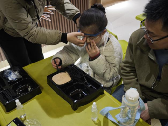 移步青少年活动中心,青铜考古盲盒体验区俨然成为小型考古现场。孩子们握着洛阳铲模型,小心翼翼清理着"探方"中的石膏块。"找到了!"循声望去已经有人举起了刚出土的"青铜爵"模型,周围立即围满好奇的小脑袋。社教老师适时讲解:"这件酒器身上的乳钉纹,象征着古人对母亲的敬仰和怀念。"