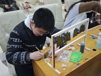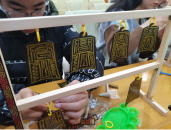 与此同时,一楼多功能厅内,“音”律华夏——青铜编钟制作体验和青铜器制作体验活动也在同步进行。50名10至18岁的青少年认真聆听工作人员讲解古代乐器知识和青铜器知识,随后动手制作,亲身感受古代工艺的魅力。他们专注的神情、灵动的双手,为古老的技艺注入了新的活力。