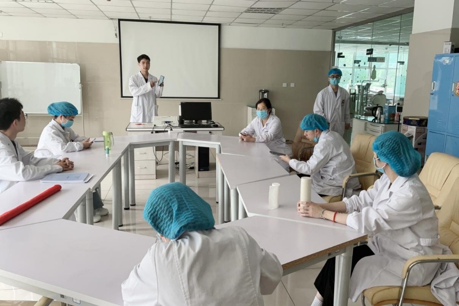 图为团队成员为甘孜州医院医生介绍儿童智能监测系统