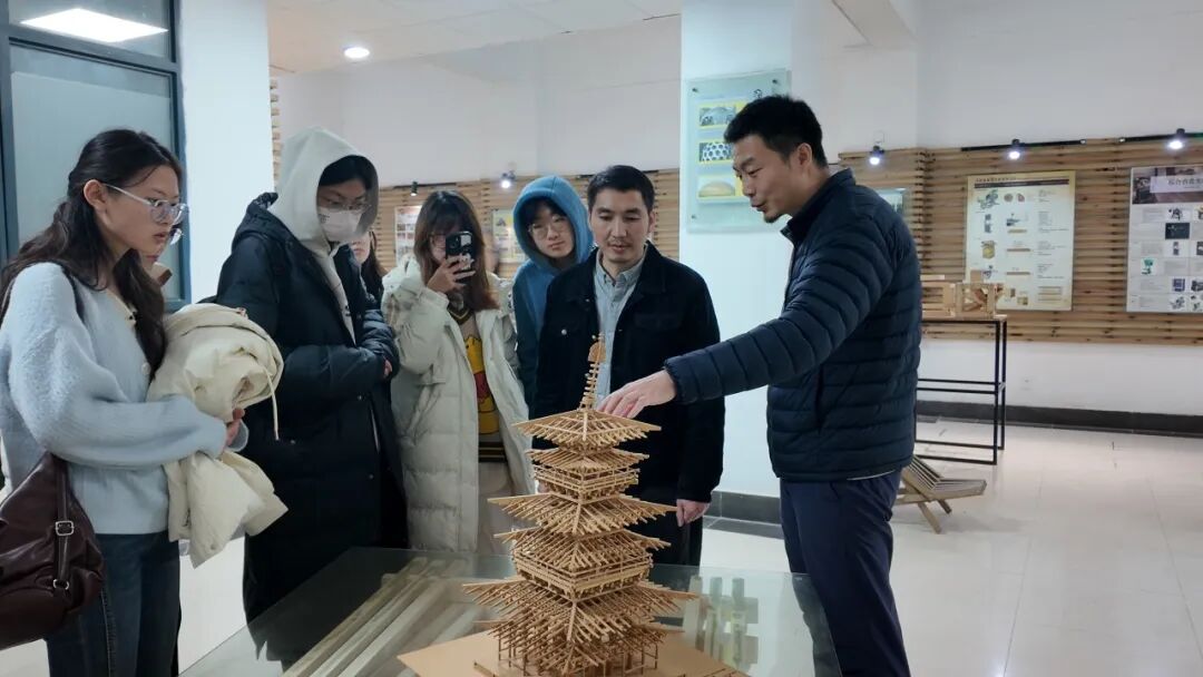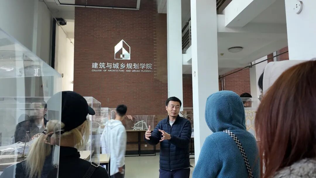 参观过程中,师生亦驻足观摩学院学生设计作品展览。从富有创意的概念方案到扎实深入的研究成果,展览作品充分体现了理工科学生对于空间、环境与人文的综合思考。展览为研习班同学提供了跨学科启发,激发了将结构性思维、空间美学融入文创设计的新灵感。
