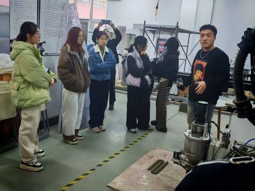 为促进学科交叉融合,拓宽文化创意视野,11月30日下午,青大思政大课堂“书情画意”文化创意研习班导师郭雄飞老师带领研习班学员,赴青岛理工大学建筑与城乡规划学院开展主题研学活动。在青岛理工大学石新羽老师的全程陪同与细致讲解下,师生一行先后参观了综合营造实验室、滨海人居环境学术创新中心数字构建实验室及相关作品展览,共同探索建筑艺术与科技前沿的融合创新。