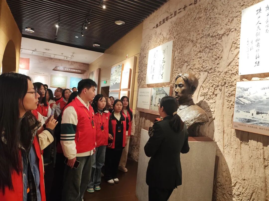 在延安期间,团队沿着历史脉络,先后到访了多处具有重要意义的革命旧址和纪念场馆。在延安革命纪念馆,一幅幅珍贵的历史照片、一件件朴素的革命文物,辅以详实的文献资料,将党中央在延安十三年间领导中国革命、培育伟大延安精神的壮阔画卷徐徐展开,使同学们对这段改变中国命运的历史有了全局性的把握。在王家坪、杨家岭、枣园等革命旧址,同学们走进毛泽东、周恩来、刘少奇、朱德等老一辈革命家曾经居住过的窑洞,亲眼目睹了简陋至极的工作生活条件:一桌一椅、一炕一灯,无不诉说着那段艰苦卓绝却又充满理想光辉的岁月。在抗日军政大学纪念馆,“团结、紧张、严肃、活泼”的校训和学员们边生产边学习的场景,让同学们感受到了理想与激情的力量;在陕甘宁边区政府旧址和中共西北局纪念馆,党早期局部执政的探索与实践,为同学们理解马克思主义中国化提供了鲜活的历史注脚。巍峨的宝塔山作为延安的象征,更让全体成员感受到了革命圣地的庄严与崇高。