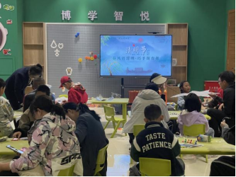 4月5日上午,50名身着汉服的小学员端坐于蒲团之上,跟随社教老师了解“我们的节日——清明”。在浓厚的学堂氛围里,小学员学习了清明的起源故事——寒食节、介子推传说,以及踏青、插柳、放风筝等传统习俗。互动问答环节大家认真思考、积极答题,获得“岩画拼拼乐”拼图奖品的孩子们兴奋之情溢于言表。
