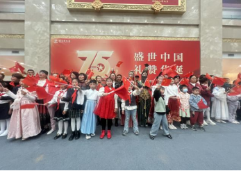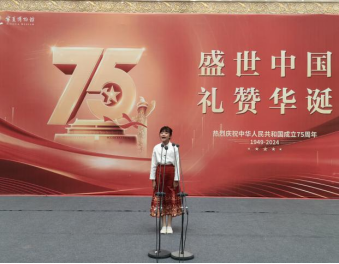 10月1日一早在宁夏博物馆中央大厅举行。二十位身着华服的小朋友,通过诵读经典文学、历史文献和反映中华民族精神的诗词歌赋,展现中华文化的博大精深,激发参与者对传统文化的热爱与传承,增强文化自信。朗诵结束后,还开展了《我和我的祖国》全体大合唱的快闪活动,与天南海北的游人人一起共贺祖国75周年华诞。