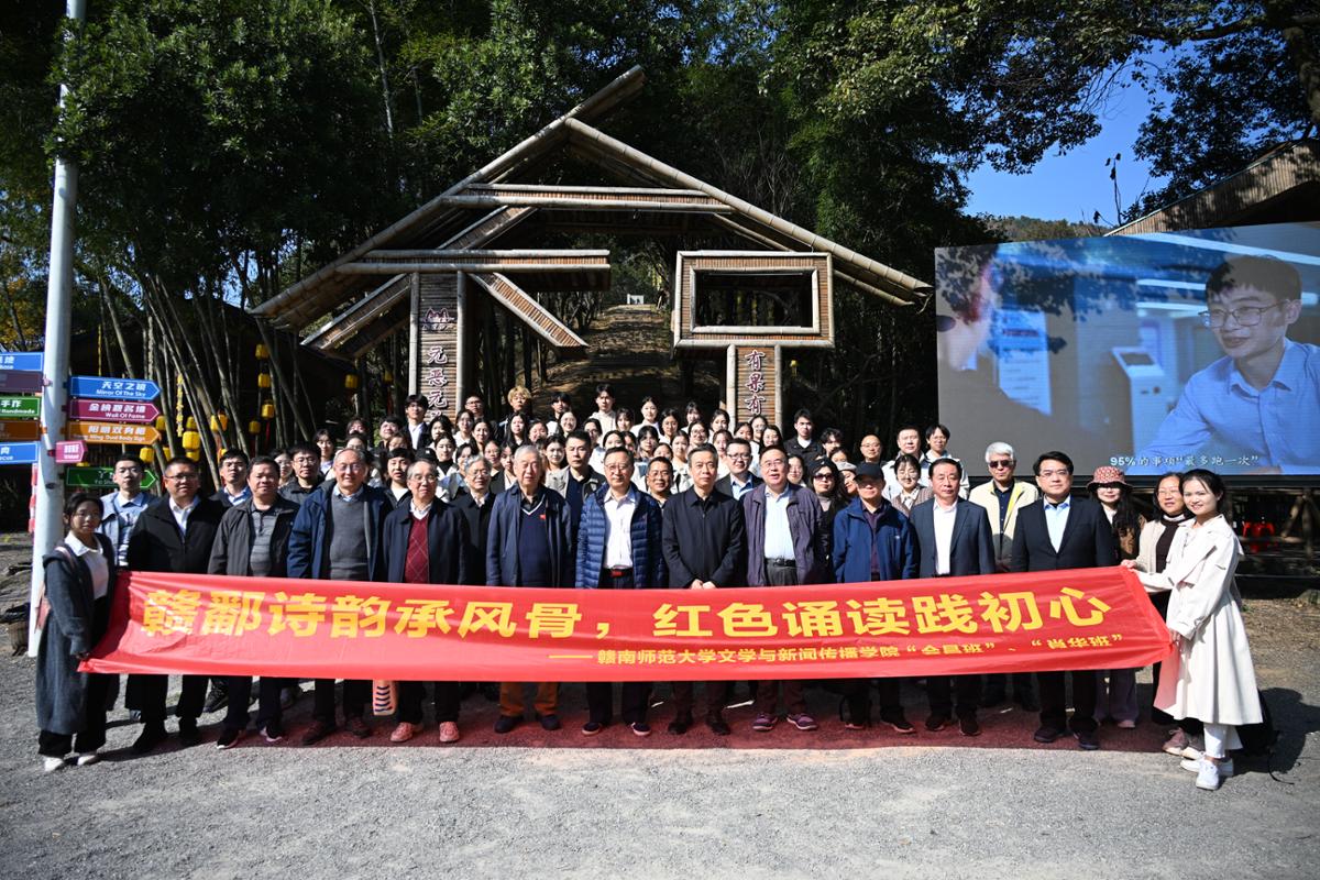 12月7日,文学与新闻传播学院红色班级“会昌班”“肖华班”,联合汉语言文学专业本科生第二党支部、研究生第二党支部,前往大余梅岭开展“三讲一悟”思政大课暨红色走读“赣鄱诗韵承风骨,红色诵读践初心”主题实践活动。活动特邀唐代文学研究新进展学术研讨会专家同行,以红色诗篇《梅岭三章》为主线,打造沉浸式行走思政课堂,推动文学专业教育与课程思政深度融合,引导师生从中汲取坚定理想信念与强大精神动力。