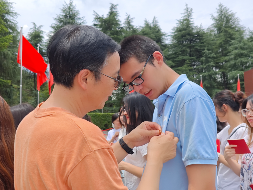 接着,开展入党宣誓。由院长唐小芹、党委副书记刘图其、院组织员刘美伶为新发展党员发放《中国共产党章程》、老党员为新发展党员佩戴党徽。鲜红的党旗下,唐小芹作为领誓人,带领全体党员一起高举右拳,面向党旗郑重宣誓。
