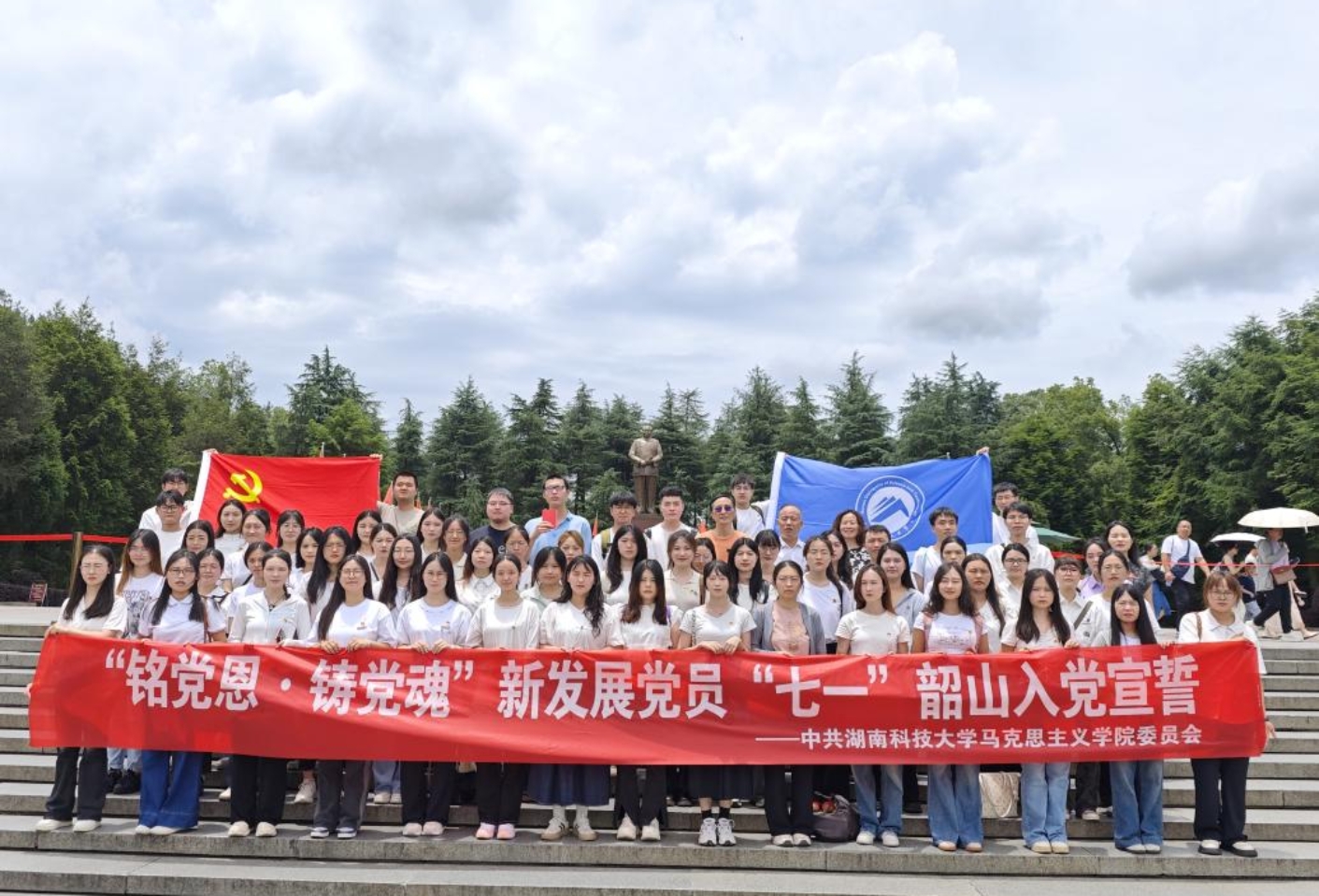 红色热土承基因,使命担当铸党魂。为进一步增强新发展党员党性修养,坚定理想信念,激发使命感和责任感,在建党104周年之际,我院党委组织新发展党员以及各学生党支部成员前往韶山开展“铭党恩·铸党魂”入党宣誓暨党性教育活动。
