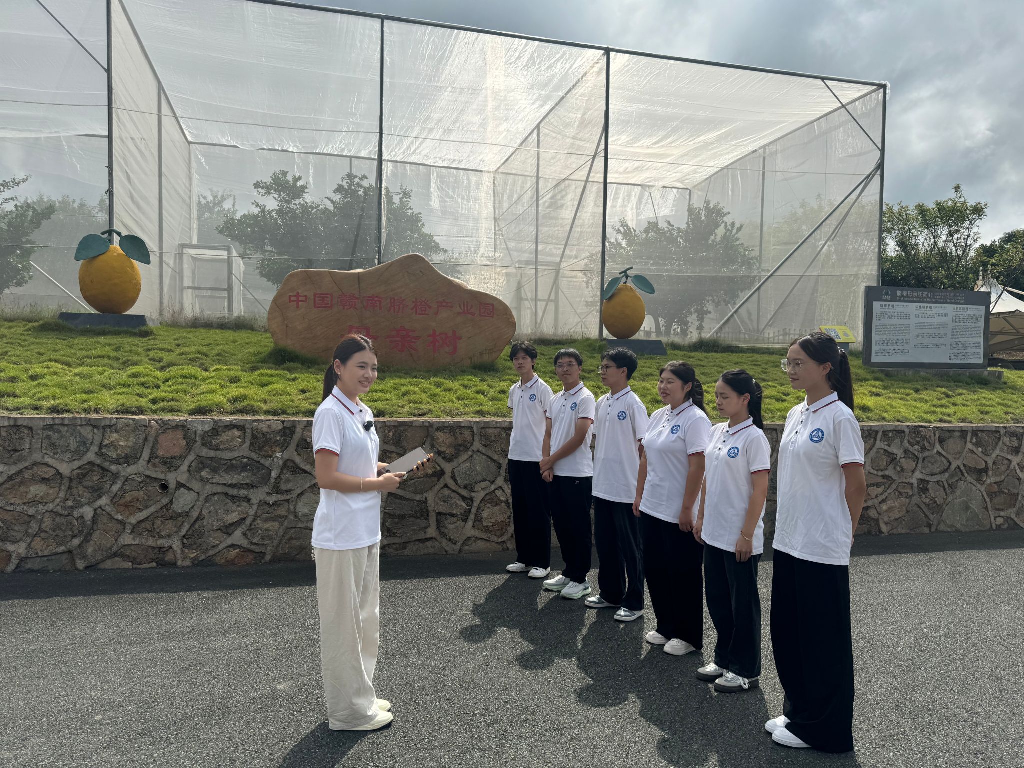 9月26日,脐橙学院师生走进信丰县,围绕“从一颗脐橙看新质生产力”主题,以“行业导师讲事理、专业教师讲学理、思政教师讲哲理、青年学子悟真理”的“三讲一悟”模式,开展了一堂沉浸式思政实践课。师生通过实地走访、案例剖析与互动研讨,生动理解新质生产力如何赋能脐橙产业高质量发展,进一步激发青年学子投身乡村振兴的责任感与使命感。