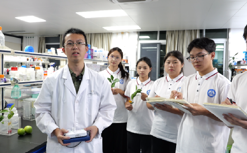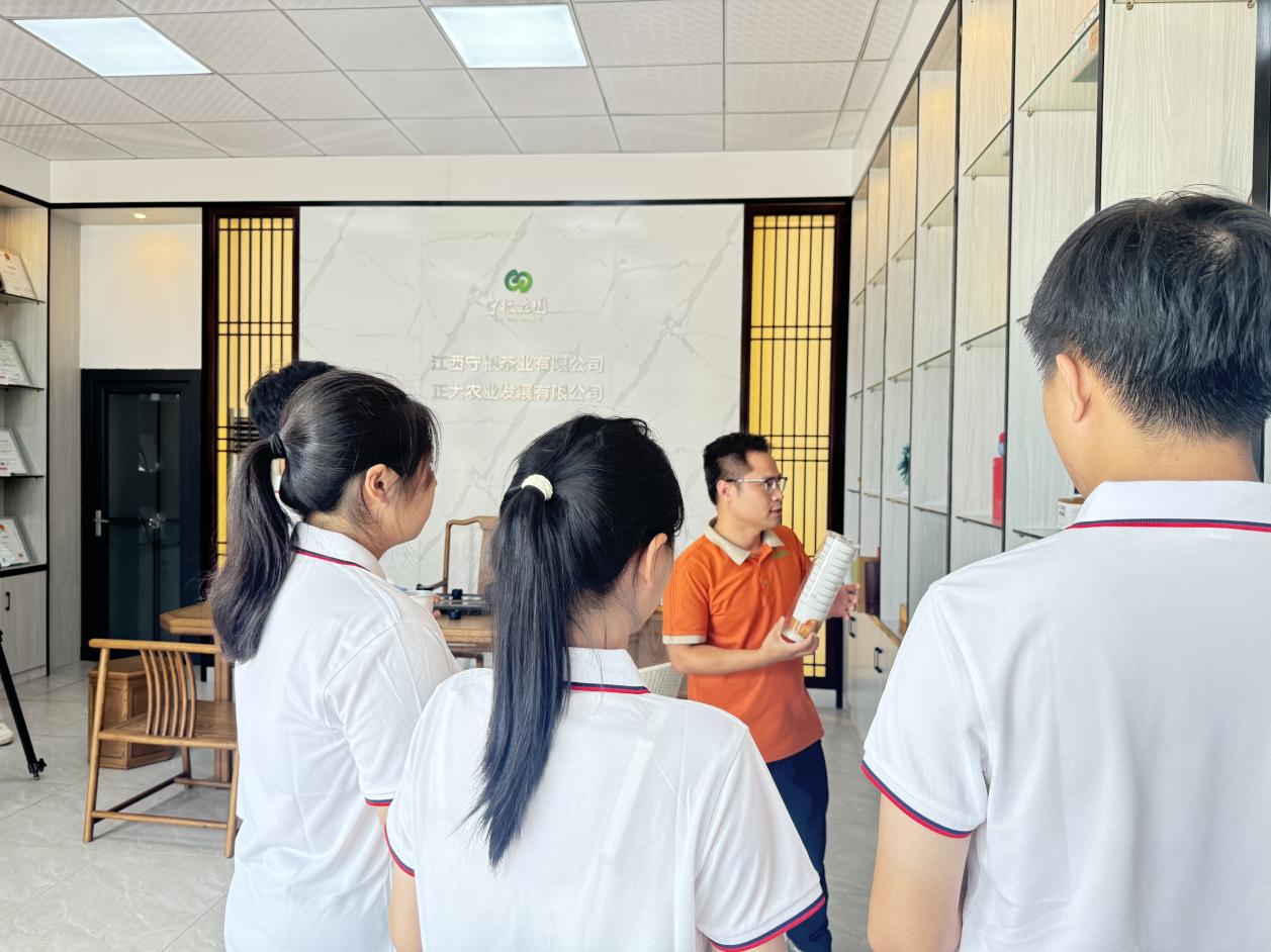 在国家脐橙工程技术研究中心,脐橙学院陈玮博士围绕柑橘黄龙病的综合防控技术,向学生讲解科技创新在病害快速检测与绿色防治方面的最新突破。同学们边听边记、踊跃提问,在交流中深化对“产教融合”实践内涵的理解。