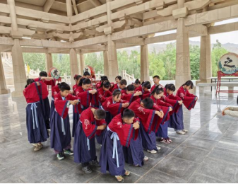 清晨8点,孩子们在宁夏博物馆集合上车,开启了一天的研学之旅。上午的水利探秘之旅中,大禹文化园的汉服体验让孩子们瞬间穿越时空,在躬身行礼中感受中华礼仪文化的厚重。