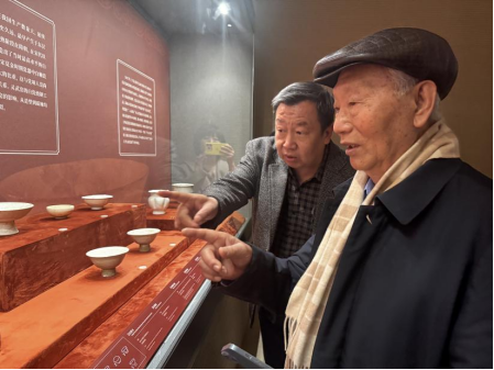 宁夏博物馆馆长王效军(左)陪同史金波先生(右)参观展览
